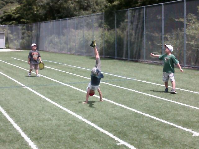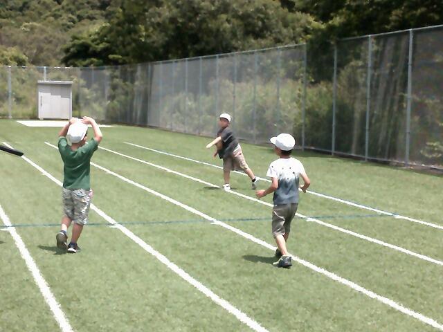 準備運動の後、タグを使ったしっぽとりです。広い運動広場で人数は少ないので、かなりハードでした。