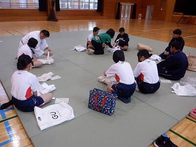 まずは柔道着のたたみ方から。普段の生活にもいかすことができそうです。柔道着を着てウォーミングアップをしたら、足さばき、受け身の練習。やはり何にでも言えるのが、「基本が大事」ということのようです。今回は1時間しかなかったので、最後に投げ技に入る動きをちょっとだけ練習しました。先週に比べると、立ち振る舞いがずいぶんと様になってきた後期課程の子ども達でした。