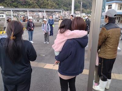 新しい船が完成したとき、島ではたくさんの餅をまいてお披露目する習わしがあります。先日、その餅まきに誘われて、放課後みんなで水揚げ場へと集合しました。「もちを拾うコツは、大きなカゴや袋をひろげておくことだよ」と張り切る子どもたち。もちろん、島のみなさんも餅まきが始まるのを今か今かと待っています。