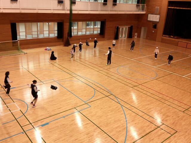 ポートボールという種目で、台の上に乗った仲間にボールを投げ、キャッチできたら得点が入ります。バスケットボールの前段階のスポーツになります。今日は初めてだったので、台は使わずに、床に置いたフープの中に入った人にパスが通れば得点、というゲームをしました。