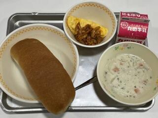 【コッペパン 牛乳 白花豆のポタージュ オムレツ きのこソース】11/10