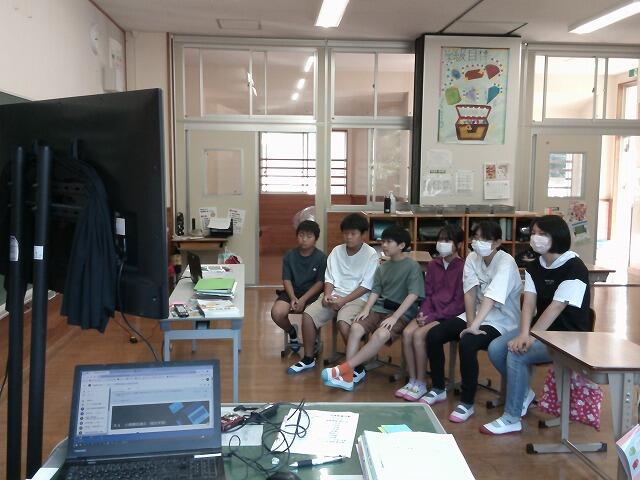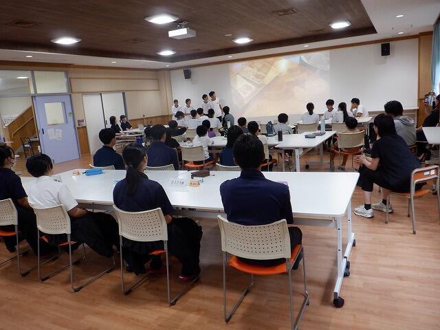 この後、3つのグループに分かれてフリートークです。高校生からは島での生活についての質問、逆に後期課程の生徒は憧れの高校生活の話に、熱心に耳を傾けていました。最後の高校生の感想の中で、「島の自然や島民の方々の優しさに触れることができ、また島に来たいです。」という言葉をいただき、改めて島のすばらしさを再確認できた子ども達でした。