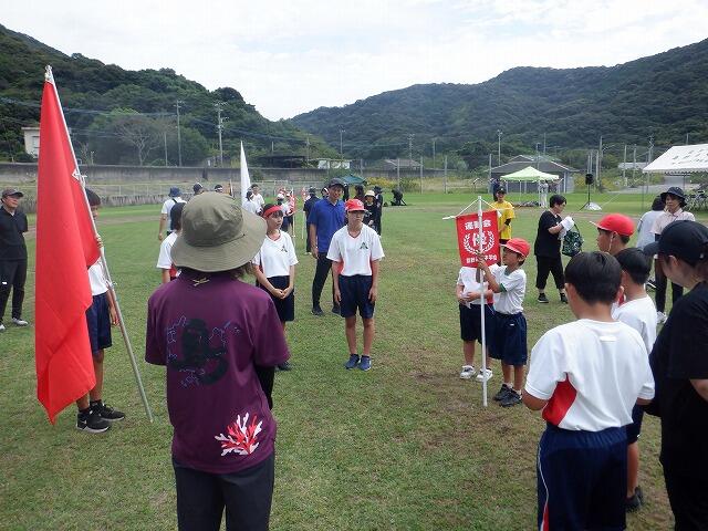 閉会式にて、結果発表。優勝旗、応援賞トロフィーが授与されました。勝ち負けはありましたが、一人一人が決して手を抜くことなく、すべての競技や自分の役割に全力で取り組む姿は、保護者の皆様のみならず、島民の方々に大きな感動を与えてくれたことでしょう。解団式でそれぞれが感想を述べる顔には、達成感がみなぎっていました。