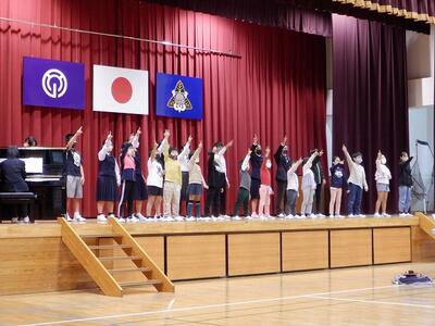 15日(火)に6年生の2名の児童が表現集会で発表しました。9年~7年のこれまでの発表を参考に、プレゼンソフトを活用し、説明を行いました。また、1・2年生にも分かるように工夫もしっかりしていました。