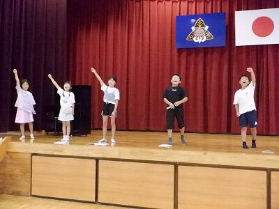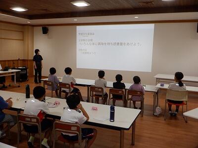 今回の児童生徒集会は、おもに、2学期の活動についての紹介でした。2学期は、学習発表会やスポーツデイ(体育大会)、島内清掃などの大きな行事が目白押しです。加えて、読書の秋ということで、読書活動の充実も活動の1つとなります。1学期にも増して、後期課程の生徒のリーダーシップが感じられました。前期課程の児童も、しっかりついていってほしいですね。