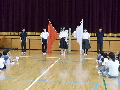 団長が封筒を選んで、さあ、中の画用紙を取り出しました。その結果、A団が赤、B団が白となりました。