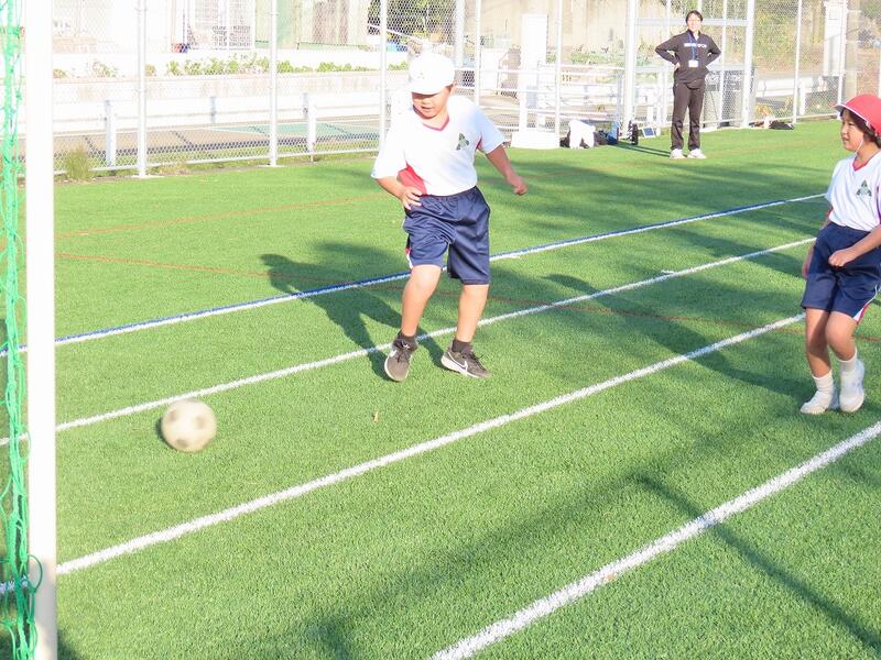 今日はクラブ活動があり、前期課程の4~6年生がサッカーにチャレンジしました。