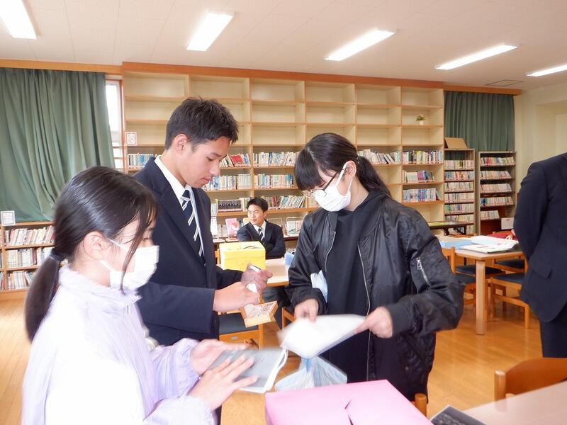 今日と明日の2日間、昼休みを使って図書館祭りが行われています。