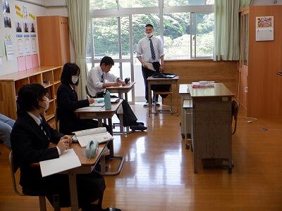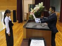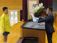 まずは、新任式です。新しく6名の先生方が島野浦学園に仲間入りしました。自己紹介の後、生徒代表で新9年生が歓迎の言葉を述べました。