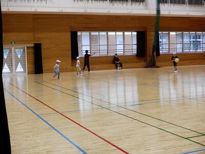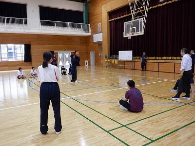 まずは体育館で説明を聞き、準備運動をした後、3つのグループに分かれます。どのグループも、前期課程と後期課程が一緒になり、後期課程のお手本を見ながら前期課程も自分の力を発揮するという、本校ならではのスタイルで行いました。