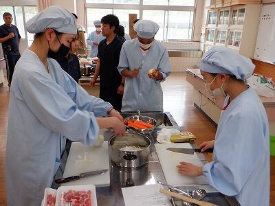 一方、後期課程は自分たちで企画したイベントで楽しい1日を過ごします。体育館に集合し、準備運動をした後、バドミントン、フリースロー大会で汗を流し、家庭科室でカレーを作ります。