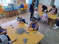 13日(火)に、1・2年生は、校外学習で、水産加工場(今原水産)に体験学習に行きました。魚の干し物をつくる作業や乾燥する場所の見学、乾燥した魚の選別を体験させていただきました。選別作業では、作業を進めていく内に見分けがつき、速く分けれうようになりました。