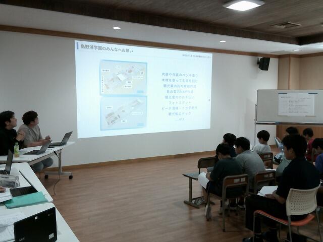 まずは、それぞれの講師の方々の説明です。環境を守るために活動していること、島の水産業の歴史とこれからのこと、観光業を中心とした地域活性化への取組など、それぞれの分野で詳しいお話を聴くことができました。