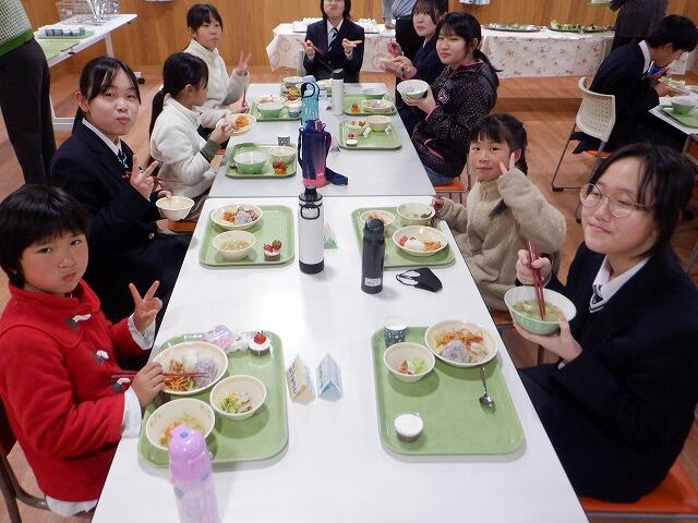 今日の給食は、なんとバイキング形式。おいしそうな料理が所せましと並べられ、子ども達もにこにこ笑顔がとまりません。おにぎり、スパゲッティ、から揚げ、グリルチキン、カマスのラヴィゴットソース、ポテト、スープ、そしてデザートのゼリーとチョコババロア。準備が整ったら全員で「いただきます」。いつも以上に会話も弾み、何回もおかわりする子やぎりぎりまで食べ続ける子もいて、みんな大満足。あっという間の給食時間でした。改めて、準備してくださった給食の先生、調理員さんに感謝です。