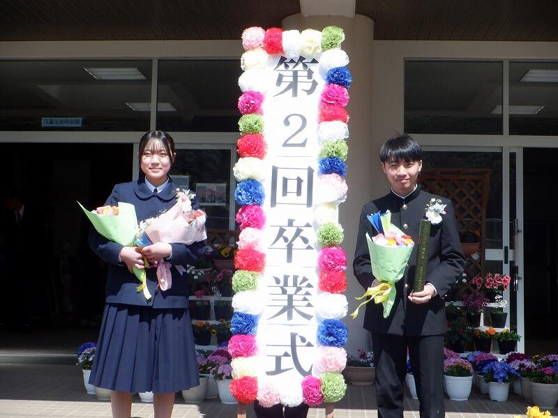 4月からは島を離れ、新しい生活がスタートする2人の卒業生。学園一同、心から応援しています。そして、在校生一丸となって、新しい島野浦学園を作っていきます。