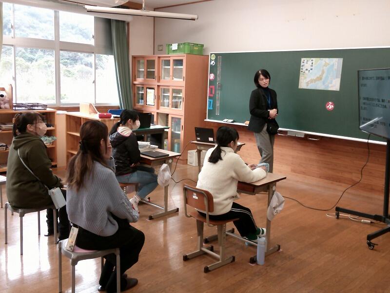 高千穂小、都農小の発表を聞いた後、いよいよ、島野浦学園の出番です。島野浦の自然、食文化、漁業、行事について、これまで調べてきたことをスライドにまとめ、上手に発表していました。その後の質問コーナーでは、クラブ活動での釣りについての質問がたくさんあり、ほかにどんな活動をしているのか、どんな魚が釣れるのか、学校から港までどれくらいの距離なのか、など、島ならではの文化に興味をもってくれたようでした。