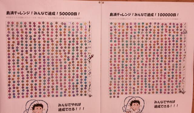 2月もゴールが見えてきました。1日から始まったなわとび月間。「島浦チャレンジ!みんなで達成!100000回!」は、本日、ついに達成しました。最後のシールが貼られた瞬間、大きな拍手がわき上がりました。始め5万回を目標にスタートしたのですが、みんなが力を合わせ、追加のシートすべてのマスにシールを貼ることができました。着実に、体力を高めることができたと思います。