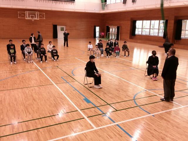 今日の5時間目、全校児童生徒が体育館に集まり、1回目の卒業式練習がありました。これまで、各クラスや音楽室で練習を重ねてきましたが、いよいよ、体育館に椅子を並べて本格的な練習のスタートです。