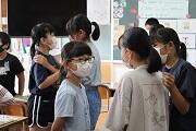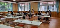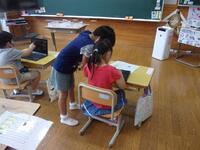 7年生は、21日に区長さんに取材に行くために、電話での連絡調整を行いました。電話での対応の仕方を学び、この日実践しました。スマホが主流になっている時代で、電話機の使い方もあまり知らない子どもが多くなったのも現状です。電話後「緊張した」の一言と安堵の表情が物語っていました。