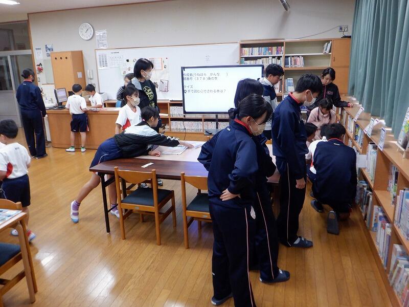 昨日の読み聞かせに続いて、今日は図書館祭りが開催されました。この日のために委員会の時間はもちろん、昼休みなども使って準備を進めてきた学習文化委員会。いよいよ、本番のスタートです。