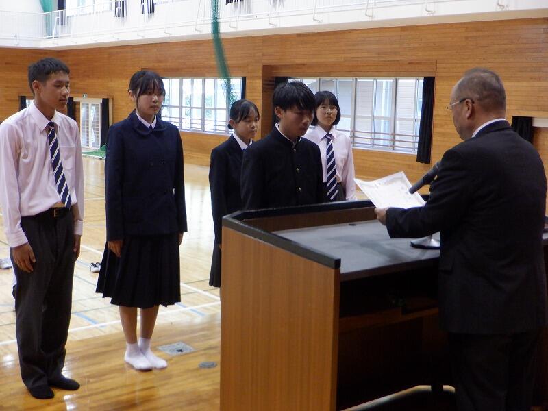 そして、新役員の発表のあと、今度は新役員一人一人に、校長先生から任命状が送られました。みんな、やる気に満ちあふれた顔をしていました。