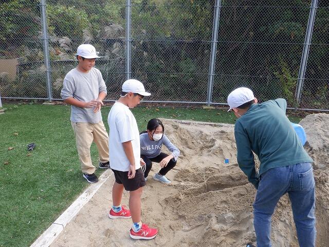 結果を確認した後は、もとの山に戻します。貸してもらったお礼に、少しだけ大きく(高く)しました。水の量が増えると削ったり運んだりするはたらきが大きくなることを、身をもって学んだ子ども達でした。