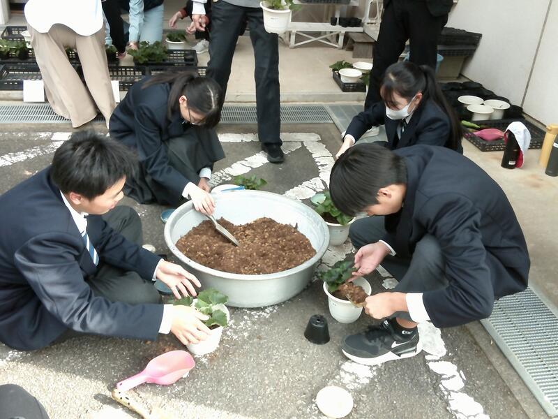 さて、ここまで詳しく調べた3・4年生は「もっと島にアサギマダラを呼びたい」と考えました。そこでスタートしたのがアサギマダラ・プロジェクト、通称「アサ☆プロ」です。本校技術員さんの協力を得ながら、去年の夏頃からシマフジバカマの苗を育て始めました。そして今日、プランターに移し替える作業を行いました。