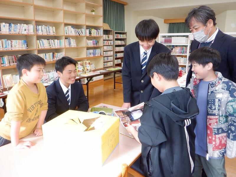 4時間目は全校児童生徒が図書室に集まり、合同島浦学。9年生による、入試に向けた取組の発表を聞きました。1年後に入試を控え現実味が増してきた8年生、まだまだ先のことでピンとこない前期課程と受け取り方はいろいろでしたが、先輩の生の声を聞く絶好の機会となりました。