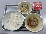 11/25 麦ご飯 牛乳 鶏肉と里芋の煮物 ほうれん草のツナマヨネーズ和え