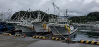 島野浦では、台風が接近すると「しけつなぎ」を旋網船や鮪縄船、小型船が行います。土曜日から、その作業がはじまりました。また、フェリーは浦城の奥につなぎます。本日も、フェリーは欠航(台風避難のため)、高速艇は朝から阿蘇まわりになっています。