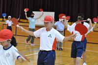 本日、スポーツデイ(運動会)で実施する島野浦のうちわ踊り(郷土伝統)を地元の講師の方を招いて、練習をおこないました。1年生にとっては初めて踊るうちわ踊りです。後期課程の生徒が近くで教えている姿もありました。
