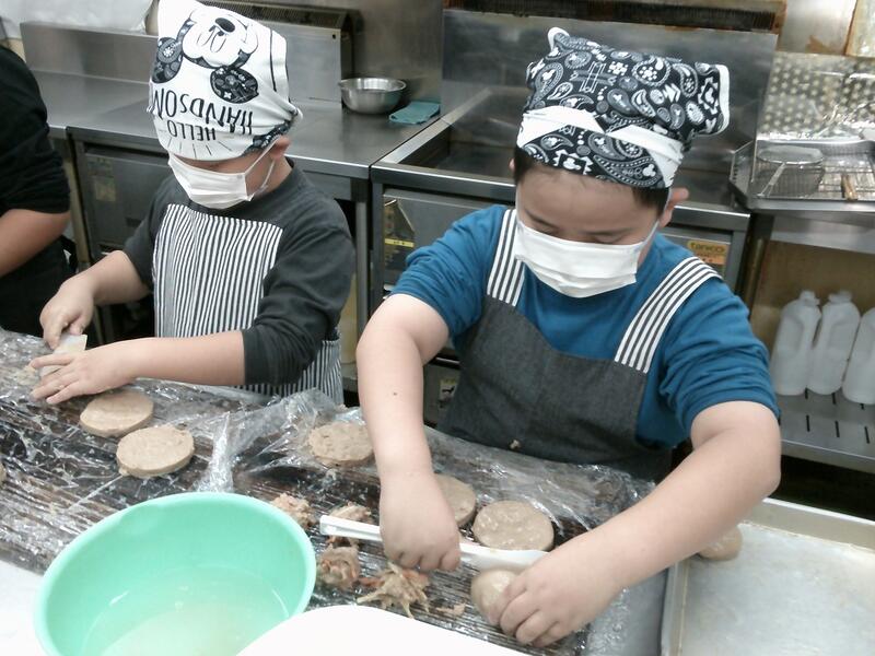 写真は、へらと型を使って、形を整えているところです。定番の丸い形のほか、動物の顔にしてみたり、たまごを包んだりと結構難しい作業です。このあと、油で揚げた熱々のあげみをいただきます。自分で揚げたあげみは、格別な味になることでしょう。