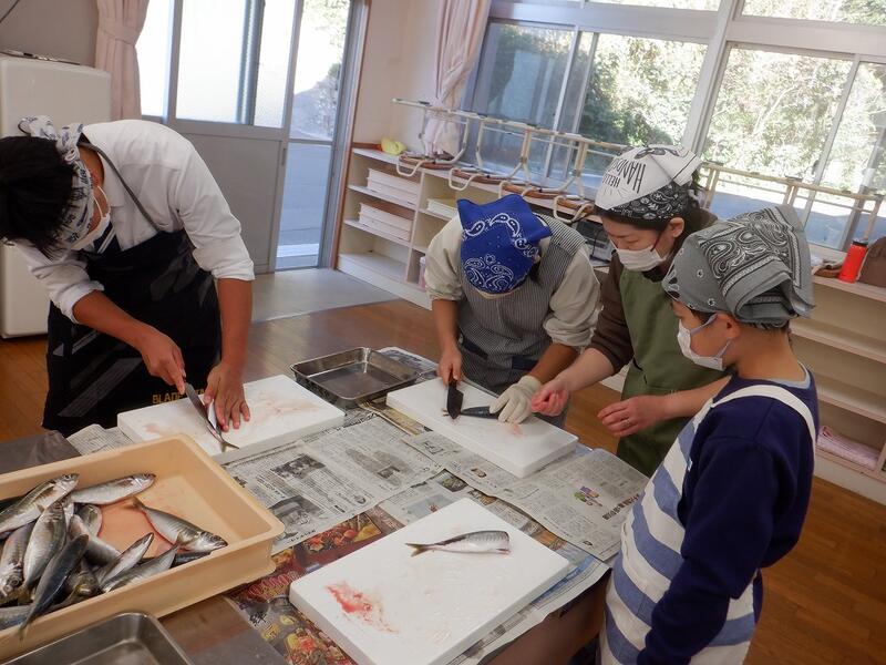 今日は、島野浦学園のビッグイベントの1つ、島浦クッキングが行われました。地元の業者さんから大量のアジを提供していただき、5~9年生がアジフライ作りにチャレンジしました。