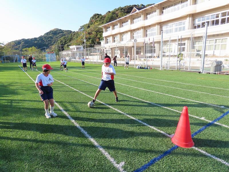 今日はクラブ活動があり、前期課程の4~6年生がサッカーにチャレンジしました。