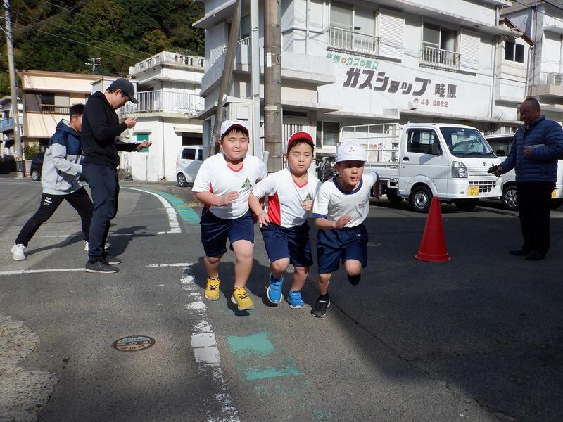 やすらぎ公園で全員で準備運動をした後、コースごとに試走をしました。ある程度の距離感をつかみ、1回目のタイム測定です。2・3年生は700m、4・5・6年生は1000m、8・9年生は2000m走ります。途中、島民の方々や保育所の子ども達から大きな声援をうけ、全員が見事に完走しました。今日のタイムをもとに、大会での目標を設定します。持久走大会本番は11日(水)、13:30から始まります。たくさんの応援をお願いいたします。