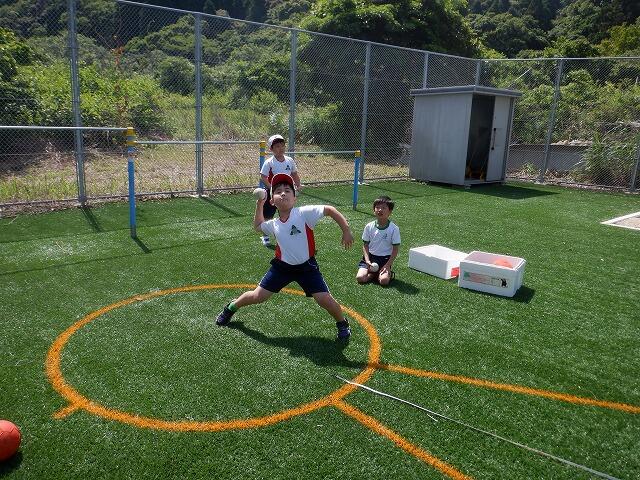 まずは3~5年生でドッジボール。人数が少ないため、内野が当たったら代わりに外野が復活するという特別ルールで、エンドレスの対戦となりました。