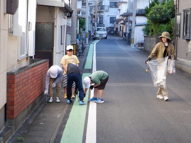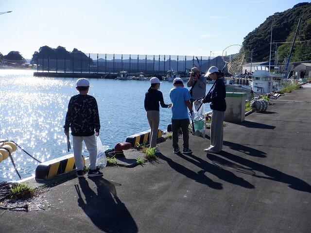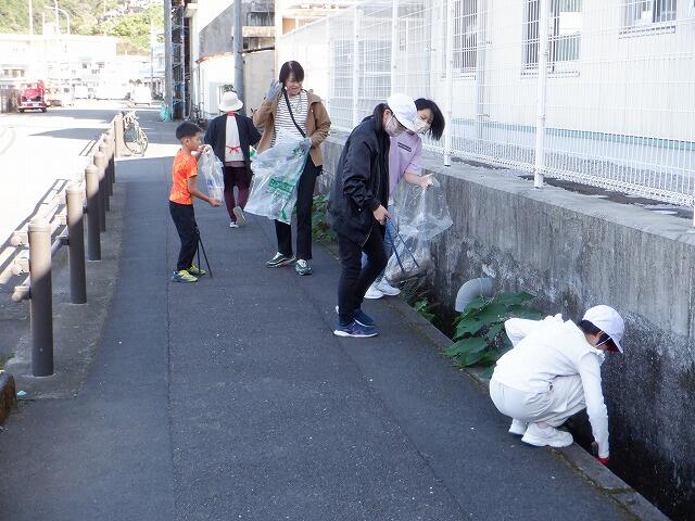 いったん下校した後、3つの地区に集合した子ども達。3つのグループに分かれ、側溝や海、道路の端っこなど、いろんなところに落ちているゴミを一生懸命拾っていました。神社大祭には島民のみなさんはもちろん、島外からもたくさんのお客さんが来られます。島がきれいになったので、気持ちよく、よどん晩(前夜祭)そして本番の大祭を迎えることができそうです。