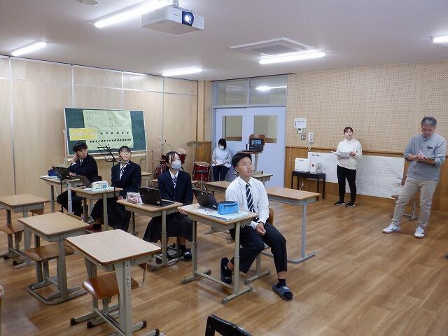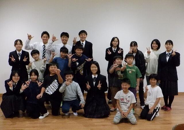 火曜日から今日までの4日間、茨城県から2人の友達が学園にやってきて、一緒に学校生活を送りました。初日こそお互い緊張感がありましたが、2人ともすぐに溶けこみ、楽しそうに過ごしていました。そして今日が最終日。給食の後に2人から感想を述べてもらい、生徒会長が代表であいさつをしました。最後に20人全員で記念写真。みんないい笑顔をしています。今回の取組は終わりますが、2人とも島にゆかりがあるので、また遊びにきてほしいと思います。