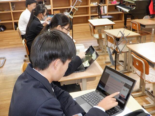 今日は、8年生で音楽科の研究授業が行われました。バッハ作曲の「小フーガト短調」を聴き、フーガ形式について学ぶのがねらいです。