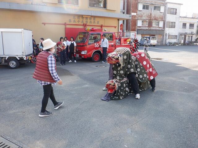 神社下に大勢のお客さんが集まり、子ども達の出し物が始まりました。獅子駒の勇壮な舞いや、前期課程・後期課程それぞれがスポーツデイで踊ったダンスで、会場を盛り上げていました。