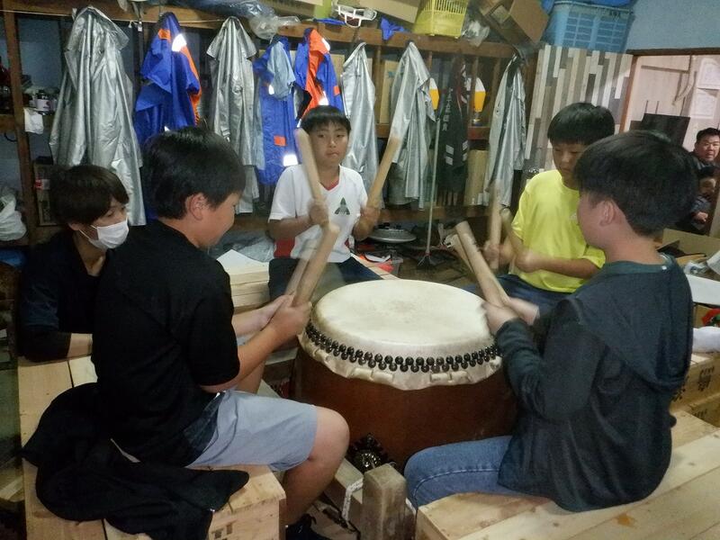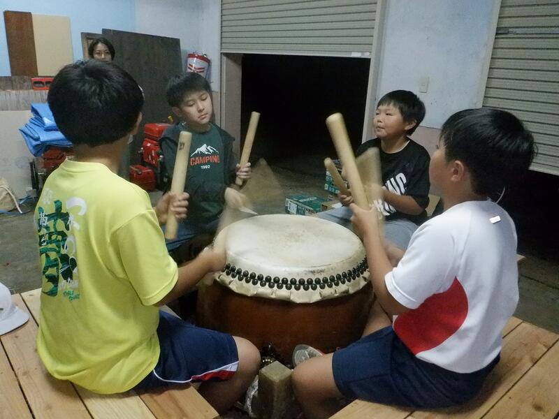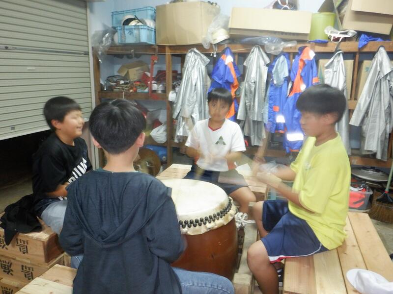 4人は約1ヶ月、放課後の時間に消防小屋に集まり、地元の方の指導を受けながら練習を重ねてきました。そしてあさって、その練習の成果を披露します。久しぶりの太鼓台ということで、島民の方々の期待も大きいと思います。ぜひとも、がんばってほしいものです。