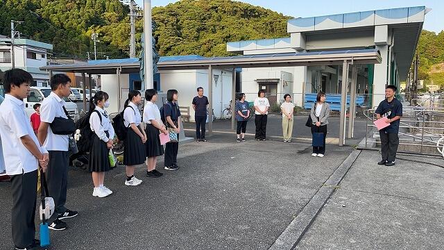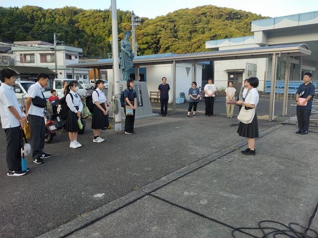 今日は、延岡市内の高校生が島にやってきて体験活動を行いました。3つの班に分かれ、そのうちの1つの班が島野浦学園を訪れました。
