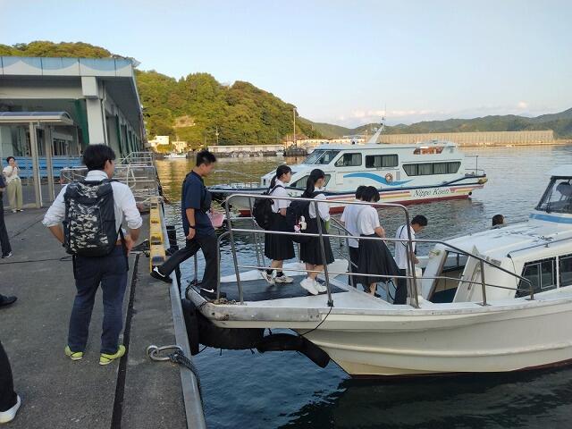 いよいよ後期課程の生徒たちが待ちに待った修学旅行です。集合時間前に全員集まり、出発式。お家の人たちや先生方に見送られ、海上タクシーに乗り込み島を出ました。この後、ジャンボタクシー、特急列車、そして新幹線と乗り継ぎ、1日目の研修、広島での平和学習を行います。たくさんのことを学んできてほしいものです。