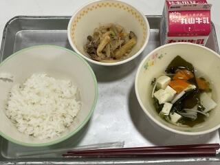 【白ご飯 牛乳 すまし汁 豚肉とじゃがいものきんぴら】10/21