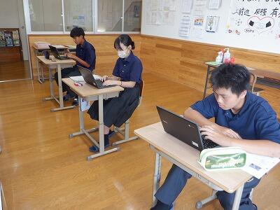 後期課程は、これまでの島浦学で学んできたことを、それぞれ個人で発表することにしています。7月の職場体験のことや、島野浦で活躍されている人のことなどについて、タブレット端末を使ってプレゼンテーションを作成したり、ポスターを描いたりしています。