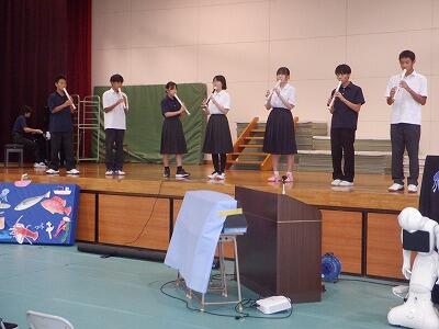今回の児童生徒集会は、おもに、2学期の活動についての紹介でした。2学期は、学習発表会やスポーツデイ(体育大会)、島内清掃などの大きな行事が目白押しです。加えて、読書の秋ということで、読書活動の充実も活動の1つとなります。1学期にも増して、後期課程の生徒のリーダーシップが感じられました。前期課程の児童も、しっかりついていってほしいですね。