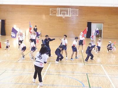 徒走で全員が全力を尽くした後、前期課程のダンスです。たくさんのお客さんの前で、楽しく、気持ちよさそうに踊っていました。決めのポーズもばっちりです。
