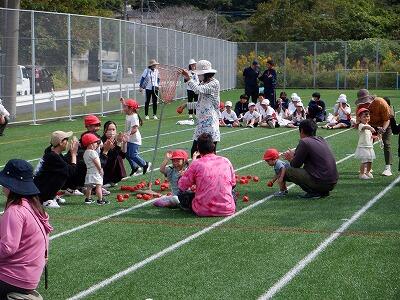 親子団技では借り物競走に挑戦。地域の方も巻き込み、笑いあふれる競技でした。全校団技の玉入れの後は、来賓のみなさんやおじいちゃん、おばあちゃんといっしょに玉入れを楽しみました。