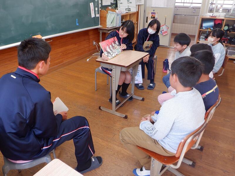この日のために本を選び、読む練習をしてきた後期課程。が、改めて前期課程の子たちを目の前にすると、緊張する人もいました。ただし、そこはさすが後期課程。声色を変えたり、強弱をつけたりと、相手を意識しながら上手に読むことができました。このような企画もまた、島野浦学園ならでは、です。