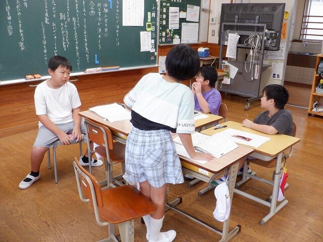 さて、今日は3・4年生が、体験入学時に何をして過ごすかの計画を立てていました。お互いに仲良くなるためのアイスブレーキングや、絵本の読み聞かせ、頭を使うゲームなど、保育所の年長さんに楽しんでもらうため真剣に話し合っていました。また、5・6年生は当日の昼休み、全校児童生徒と年長さんで何をして遊ぶかの話合いをしていました。2年生は一緒に遊ぶおもちゃの制作に取り組んでいます。本番はまだ先ですが、着々と準備が進んでいるところです。